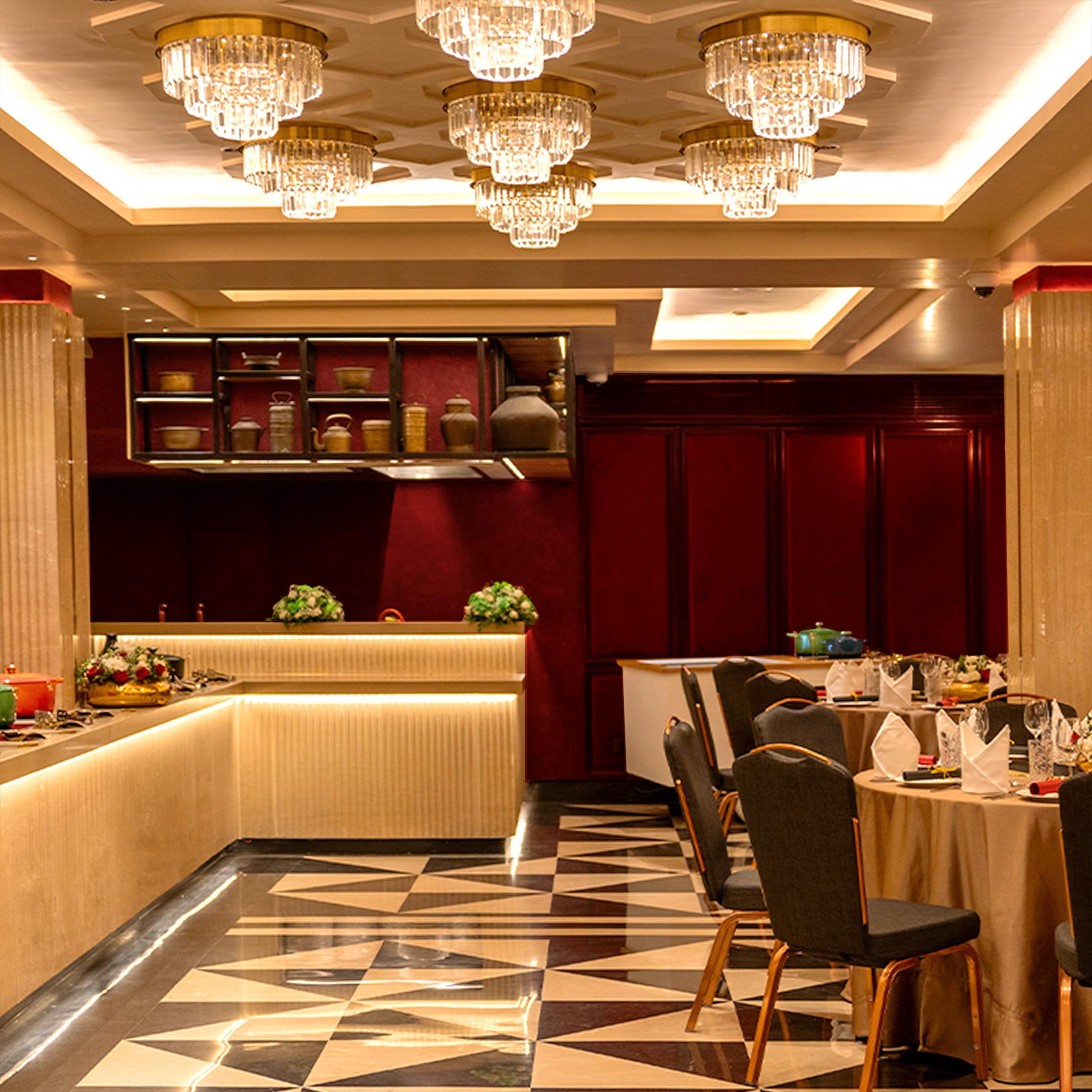 Burgundy Banquets sets a new standard for business hospitality, offering a refined environment designed for discerning professionals. Italian Marble Flooring & Fluted Columns at the venue inspire meaningful conversations, impactful presentations, and memorable corporate gatherings.
